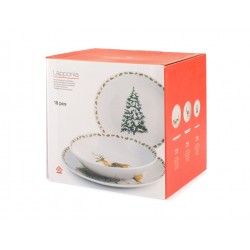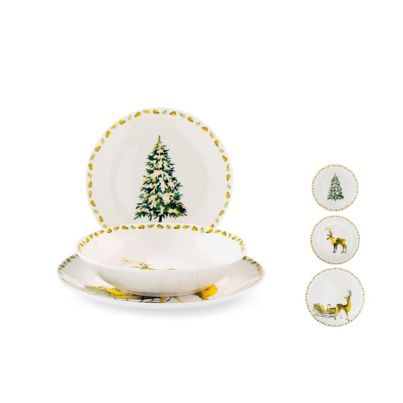 Servizio 18 pezzi tavola lapponia in porcellana decorata forma coupe. composto da 6 piatti piani cm 24, 6 fondi cm 20 e 6 frutta cm19. idoneo al lavaggio in lavastoviglie e all'uso in forno a microonde