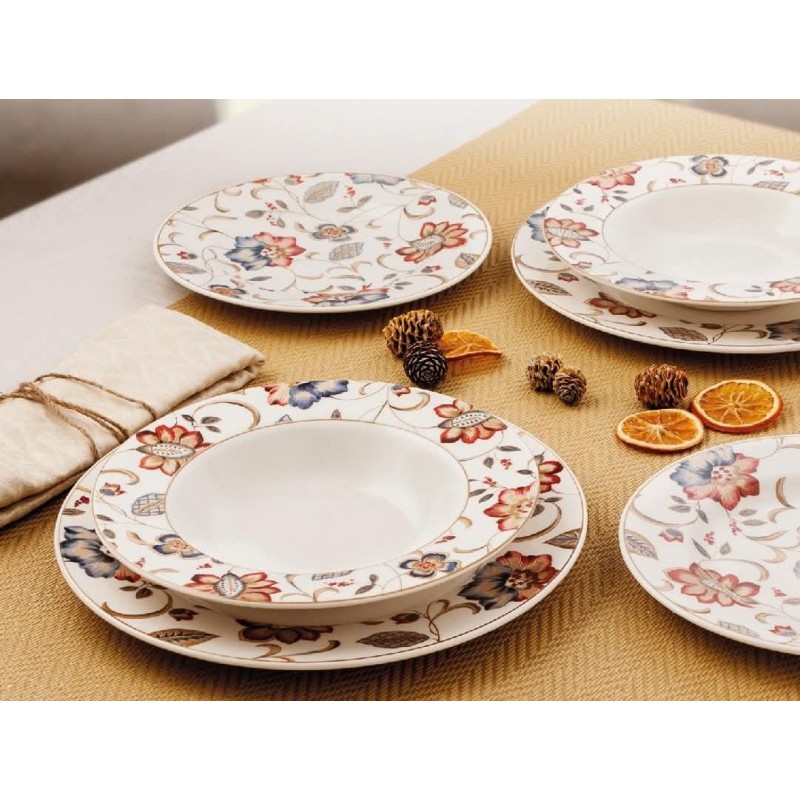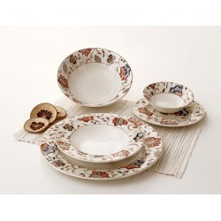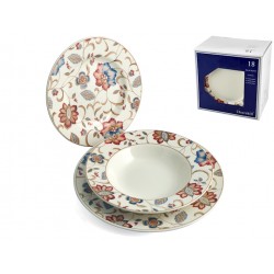 Servizio tavola 18 pezzi jacobean in erthenware decorato. Composto da: 6 piatti piani, 6 piatti fondi, 6 piatti frutta