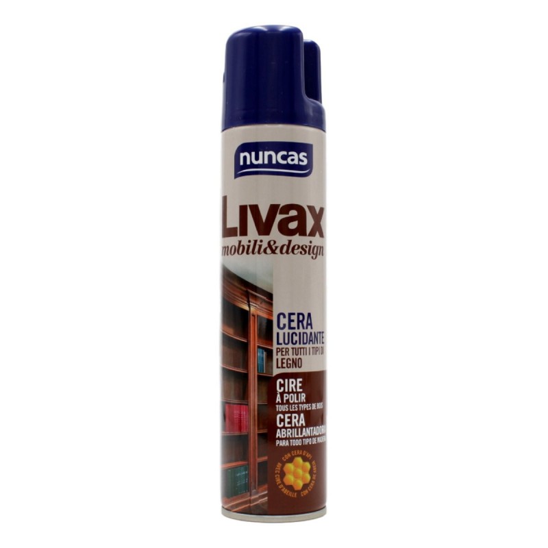Nuncas Livax Mobili&Design Cera Lucidante è un prodotto specifico antipolvere, adatto per tutti i i mobili in legno, anche antichi e pregiati. Rimuove macchie, aloni e polvere da legni verniciati, naturali o trattati a olio. Con all’interno vera cera d’api idrata e crea una protezione superficiale che allontana la polvere e mantiene il legno lucido, brillante e bello nel tempo.
