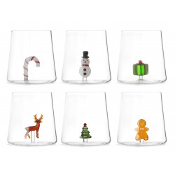 Set di 12 bicchieri in vetro borosilicato, da 480 ml ciascuno, decorati con sei motivi natalizi assortiti: candy cane, omino di pan di zenzero, Babbo Natale, albero di Natale, pupazzo di neve e renna. I bicchieri sono realizzati in vetro borosilicato, un materiale noto per la sua eccellente resistenza alla rottura, alla temperatura e agli shock termici. Questa caratteristica li rende particolarmente adatti per un uso quotidiano e per le occasioni speciali. Inoltre, il vetro borosilicato facilita la pulizia, anche in lavastoviglie. Ogni bicchiere è confezionato singolarmente, una soluzione ideale per regali, segnaposti o pensieri natalizi per gli ospiti.