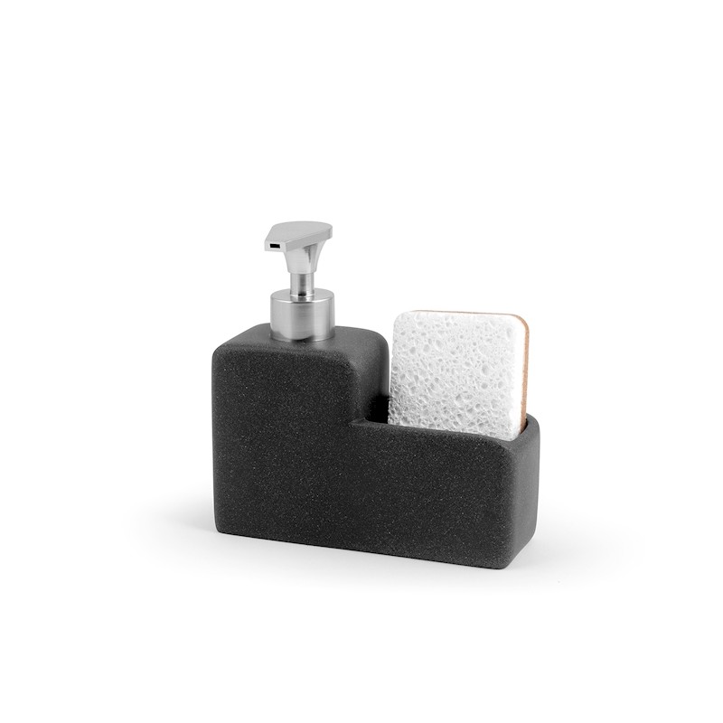 Dosasapone da cucina n resina nero con porta spugna. spugna inclusa