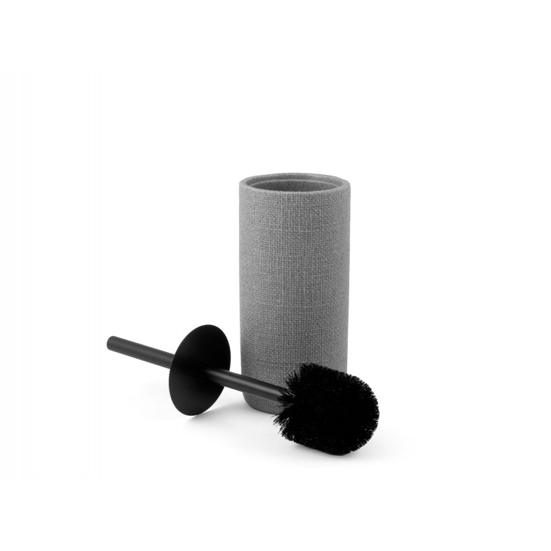 Porta scopino in resina grigia con effetto trama in rilievo, un accessorio pratico e discreto per mantenere lo scopino in ordine. La texture in rilievo aggiunge un tocco di eleganza, rendendolo perfetto per aggiungere un accento moderno e funzionale al tuo bagno
