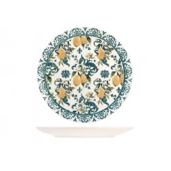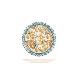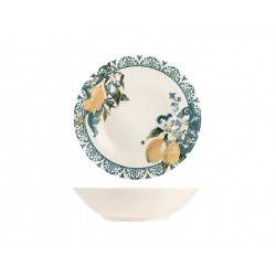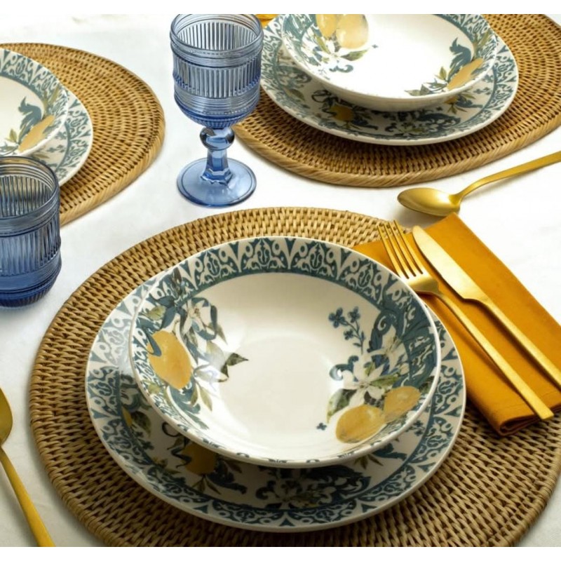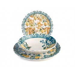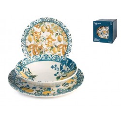 Servizio 18 pezzi tavola sicily in stoneware decorato. composto da 6 piatti piani cm 26x2,5h peso 0,735 gr, 6 piatti fondi cm 20x5h peso 0,485 gr., 6 piatti frutta cm 18,5x2h peso 0,370 gr.